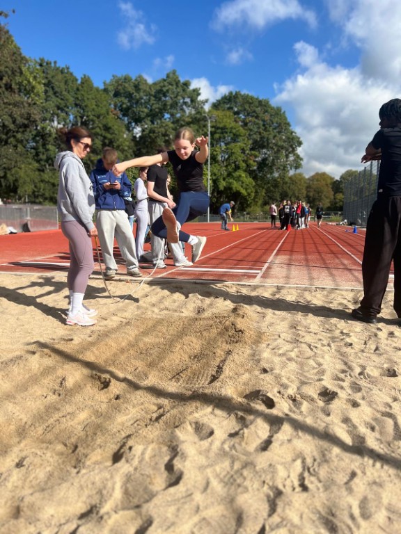 Am 23.9.25 fand das Sportfest für die Jahrgangsstufen 6, 7 und 8 im Sportzentrum Horkesgath statt. Bei herrlich herbstlichem Wetter traten die Marienschülerinnen und Marienschüler in einem Leichtathletik-Dreikampf an. In den klassischen Disziplinen Sprint, Weitsprung und Weitwurf konnten alle ihr Können zeigen und ihre Leistungen unter Beweis stellen.