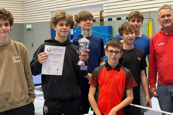 Unsere Tischtennis-Mannschaft der Jungen knüpfte nahtlos an die Erfolge des vergangenen Schuljahres an. Souverän gewann das Team erneut die Meisterschaft der Krefelder Schulen.