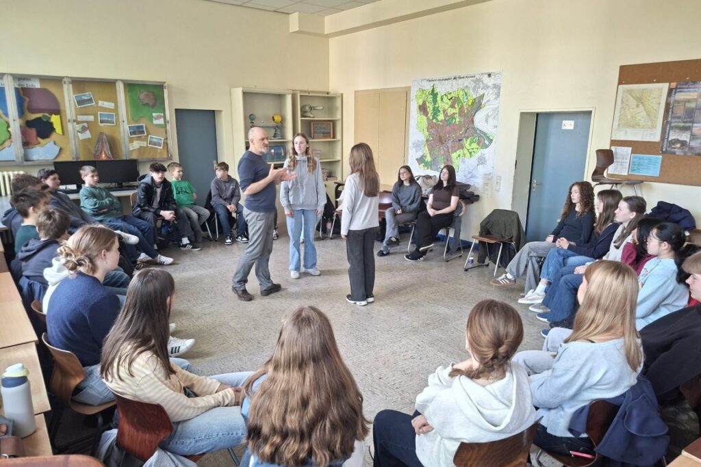 Im Rahmen des Präventionsprojekts „Stark im Konflikt“ waren die erfahrenen Trainer Olaf Herzog und Simon Steimel zu Gast an unserer Schule. In jeweils 90-minütigen Trainingseinheiten pro Klasse verwandelte sich der Klassenraum in ein Forum für praktische Übungen zur Gewaltprävention und Stärkung des Selbstwerts.