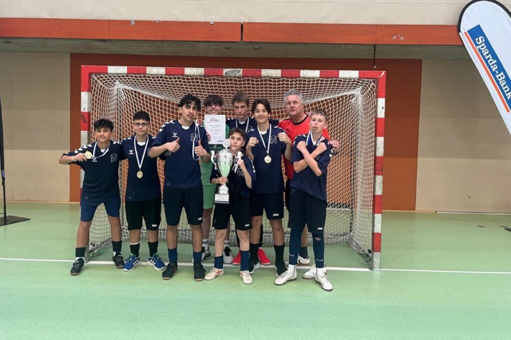 Was für ein Fußballmärchen! Nachdem in den vergangenen Jahren vor allem die Mädchenmannschaften der Marienschule beim Spardabankcup für Schlagzeilen gesorgt hatten, zog in diesem Schuljahr die Jungenmannschaft nach – und wie! Mit beeindruckender Souveränität sicherten sich die Jungs den Hallentitel und sorgten damit für eine echte Überraschung.