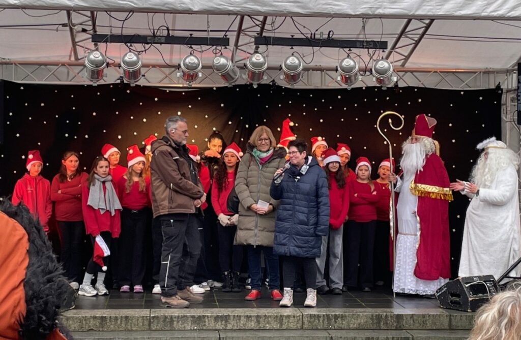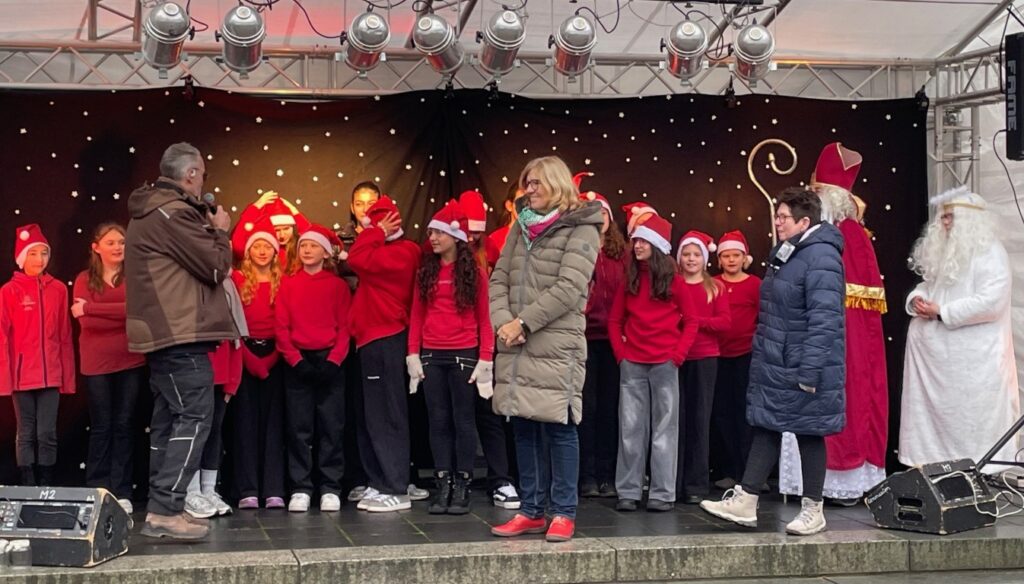 Unsere Schulsekretärin Ela Frangen ist im Leitungsteam dieses Marktes und so kommt es, dass auch Gruppen unserer Schule sich beteiligen. Allen voran die Spanisch-Schüler aus der EF haben mit Frau Blümke die Verantwortung für einen Stand übernommen. Die Tanz-AG erfreute das Publikum mit dem Christmas Intro. Neben dem Spaß an der Gemeinschaft mit so vielen engagierten Menschen sprang auch ein schöner Betrag für unser SAM-Projekt in Lima/Peru heraus.