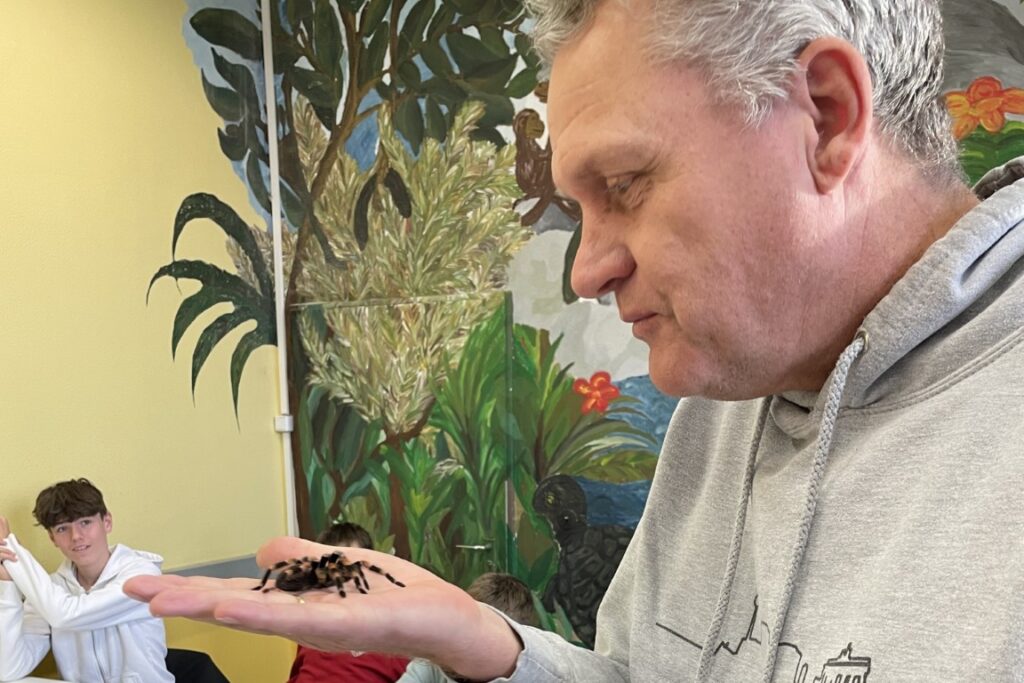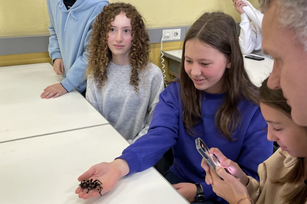 Am Montag, dem 01.12.2025 sowie am Dienstag, den 02.12.2025 hat Herr Dr. Lokscha die 8. Klassen im Biologieunterricht besucht, um uns die Welt der Spinnen näher zu bringen.